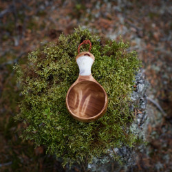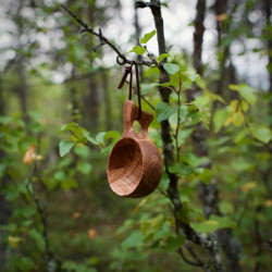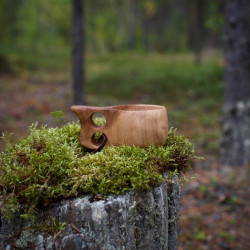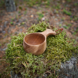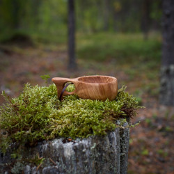 Etthålskåsan är tillverkad för hand av björkvril, med ett hål i handtaget vilket skapar ett stadigt grepp om kåsan.